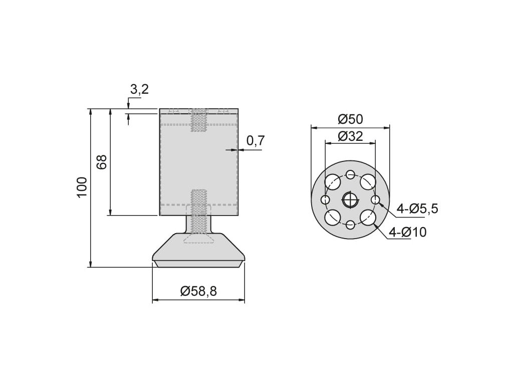 Nábytková nožka vhodná pro lůžka či nábytek pro odpočinek.