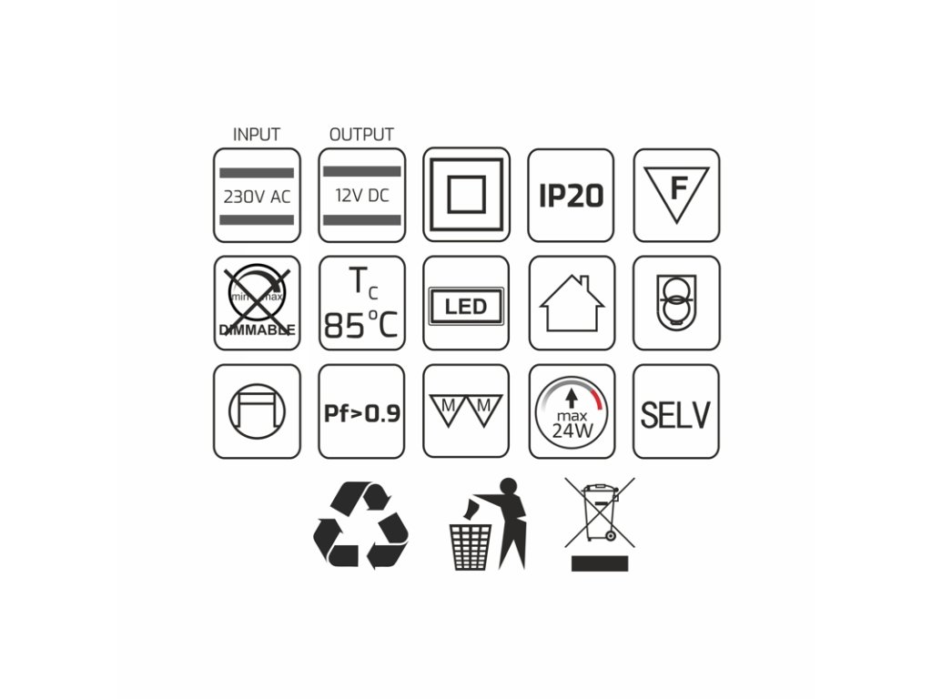 Zdroj je v bílé izolační plastové obudově a díky krytí IP20 je určen pro použití v interiéru. Hodí se pro podskříňková kuchyňská LED svítidla i kratší úseky LED pásků. Prodává se bez kabeláže.