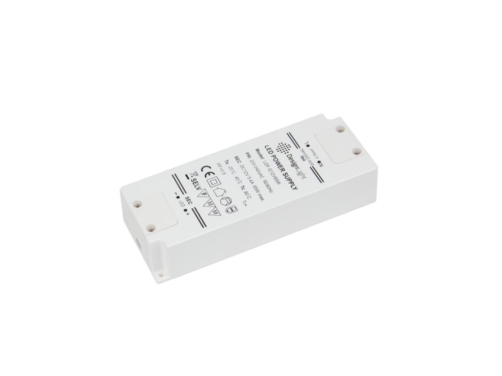 Napájecí zdroj LED 65W STANDARD PLUS převádí vstupní napětí 230V~ 50/60Hz na výstupních 12V DC a je určen pro napájení LED osvětlení s celkovým výkonem do 65W.
