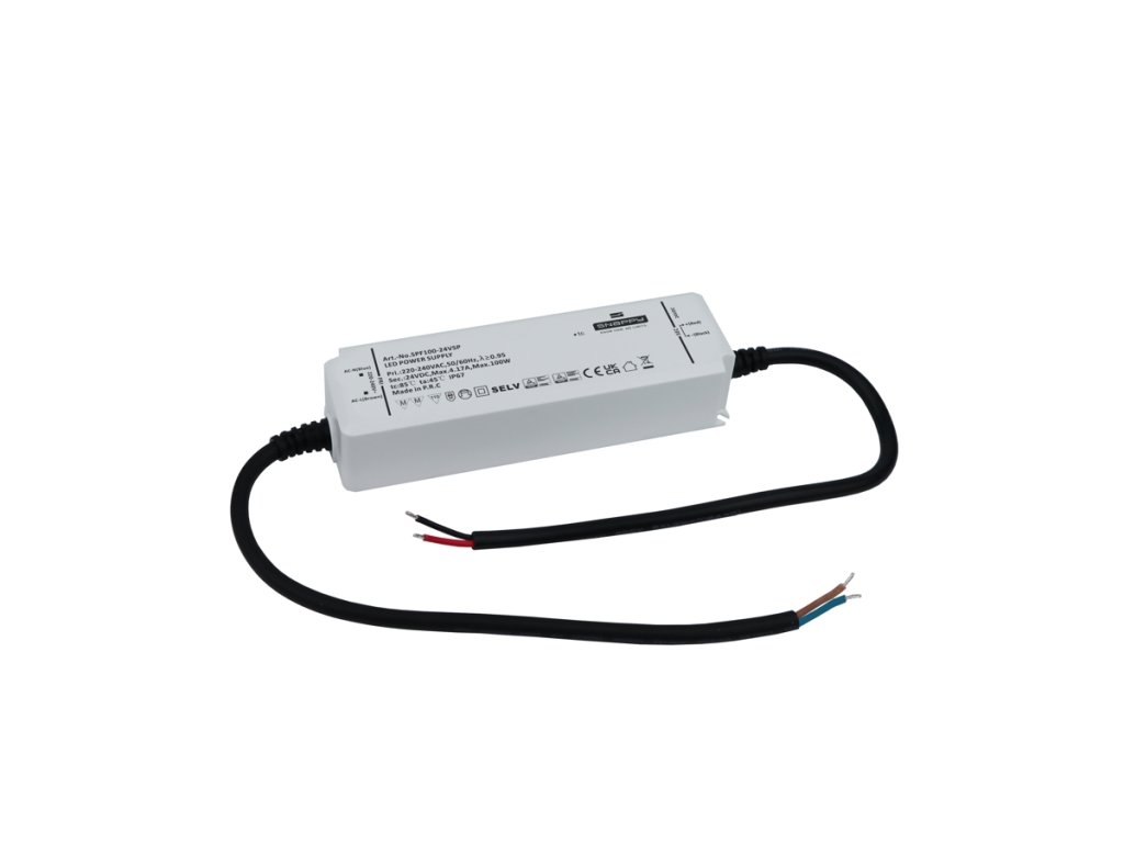 Profesionální napájecí zdroj pro LED svítidla a LED pásky s výkonem 100 W a zvýšeným krytím IP67 pro použití v interiéru i exteriéru.