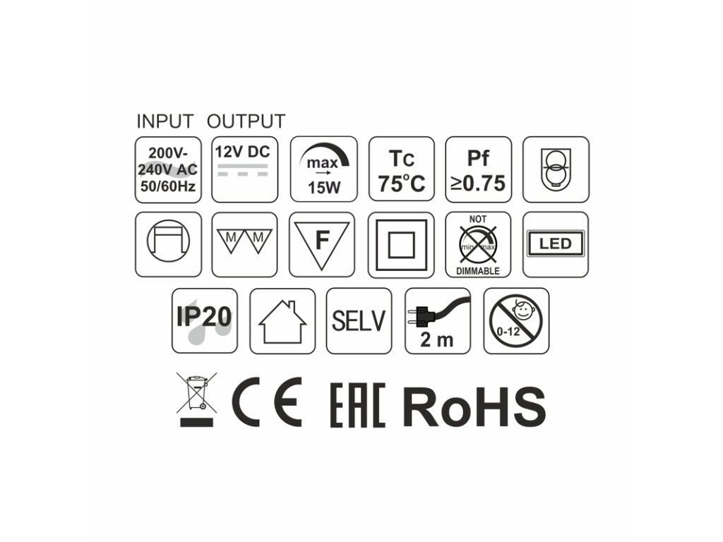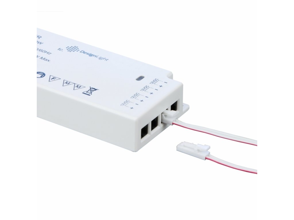 Moderní napájecí zdroj pro LED, který převádí 230V~ 50/60Hz na 12V DC a je určen pro LED osvětlení s celkovým příkonem do 15W. Má 4 vestavěné mini zásuvky pro přímé připojení LED světel pomocí mini konektorů. Rychlé zapojení systému během pár sekund pomocí systému „KLIK“. Barva bílá