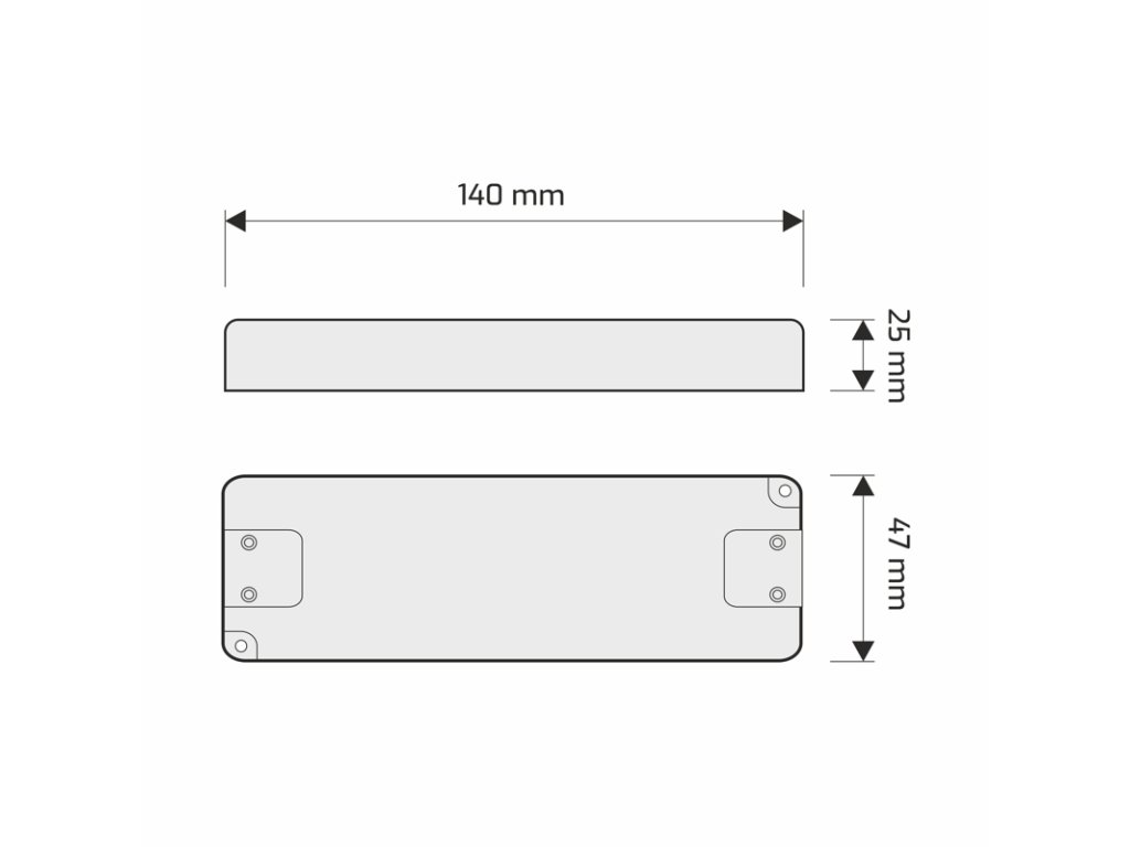 Zdroj je v izolační plastové obudově v bílé barvě a je určen pro použití v interiéru díky krytí IP20. Prodej je řešen bez kabeláže (bez napájecího kabelu).