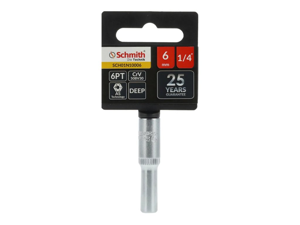 Nasadka sześciokątna 1/4" o rozmiarze 6 mm w wersji długiej to wytrzymałe narzędzie wykonane z wysokiej jakości stali CR-V (chromowo-wanadowej), zapewniającej długą trwałość oraz odporność na korozję. Wydłużona konstrukcja pozwala na wygodną pracę w głębszych gniazdach oraz trudno dostępnych miejscach. Dzięki systemowi AS-DRIVE, nasadka zapobiega niszczeniu nakrętek oraz ich blokowaniu się, co podnosi bezpieczeństwo i komfort pracy. Dwa-tony wykończenia zapewnia estetyczny wygląd oraz dodatkową ochronę przed zużyciem.