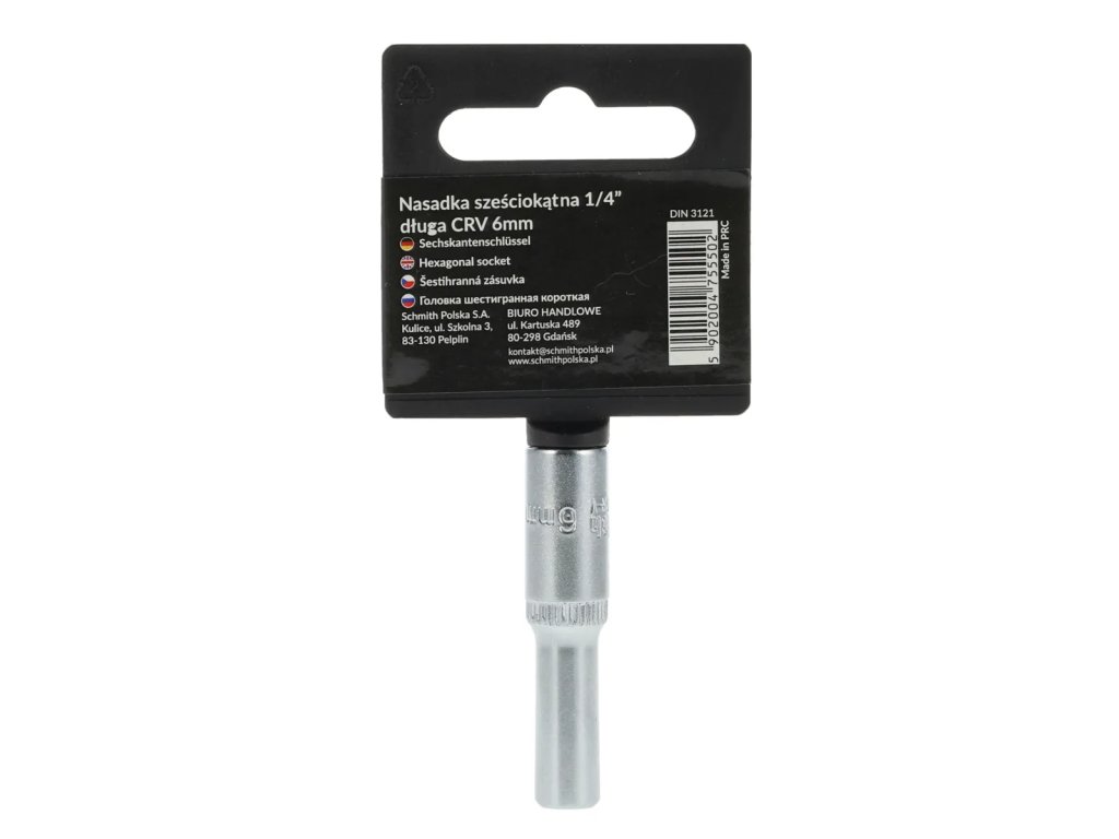 Nasadka sześciokątna 1/4" długa CRV 6mm