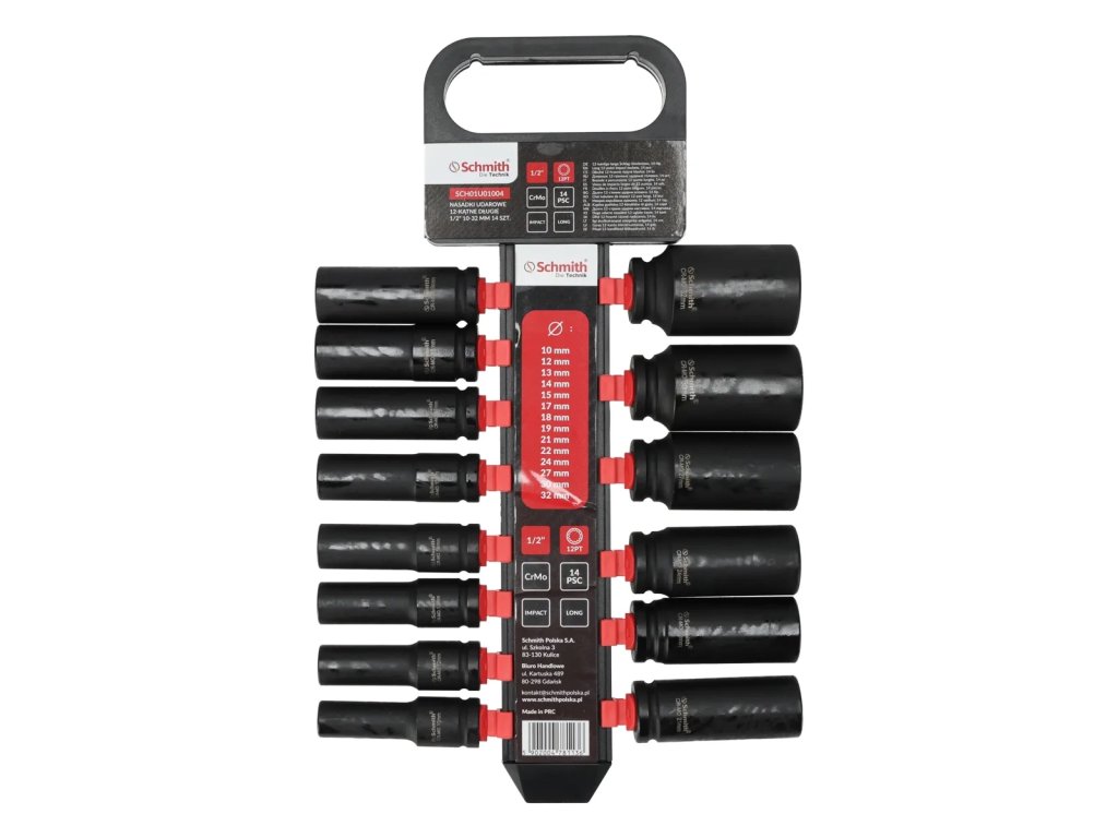 Nasadki udarowe 12-kątne 1/2" długie 10-32 mm 14 szt. Schmith