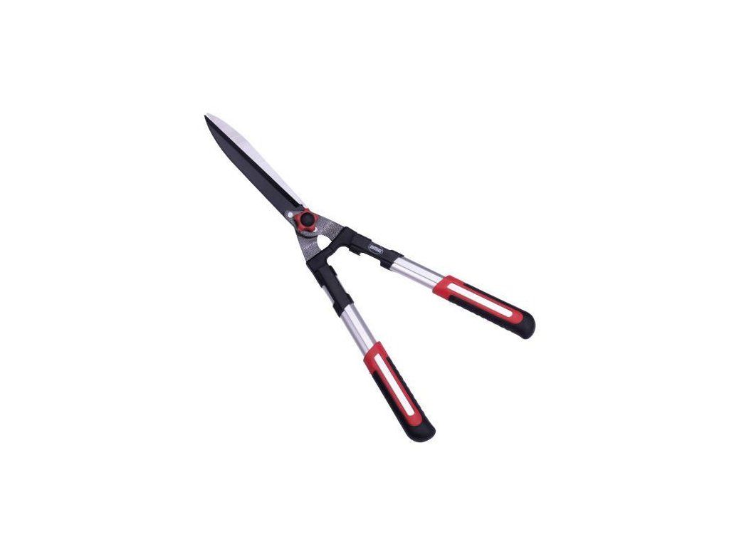 Dwuręczne nożyce do żywopłotu mod. P05 Specyfikacja: - Długość całkowita: 61cm - Ostrze ze stali hartowanej z nieprzywierającą powłoką teflonową. - Zakrzywiona krawędź tnąca zapewnia dobry chwyt gałęzi i łatwe cięcie. - Nadaje się do cięcia nieregularnych żywopłotów. - Lekkie i mocne aluminiowe rączki. - Ergonomiczne i antypoślizgowe uchwyty. - Zintegrowane amortyzatory.