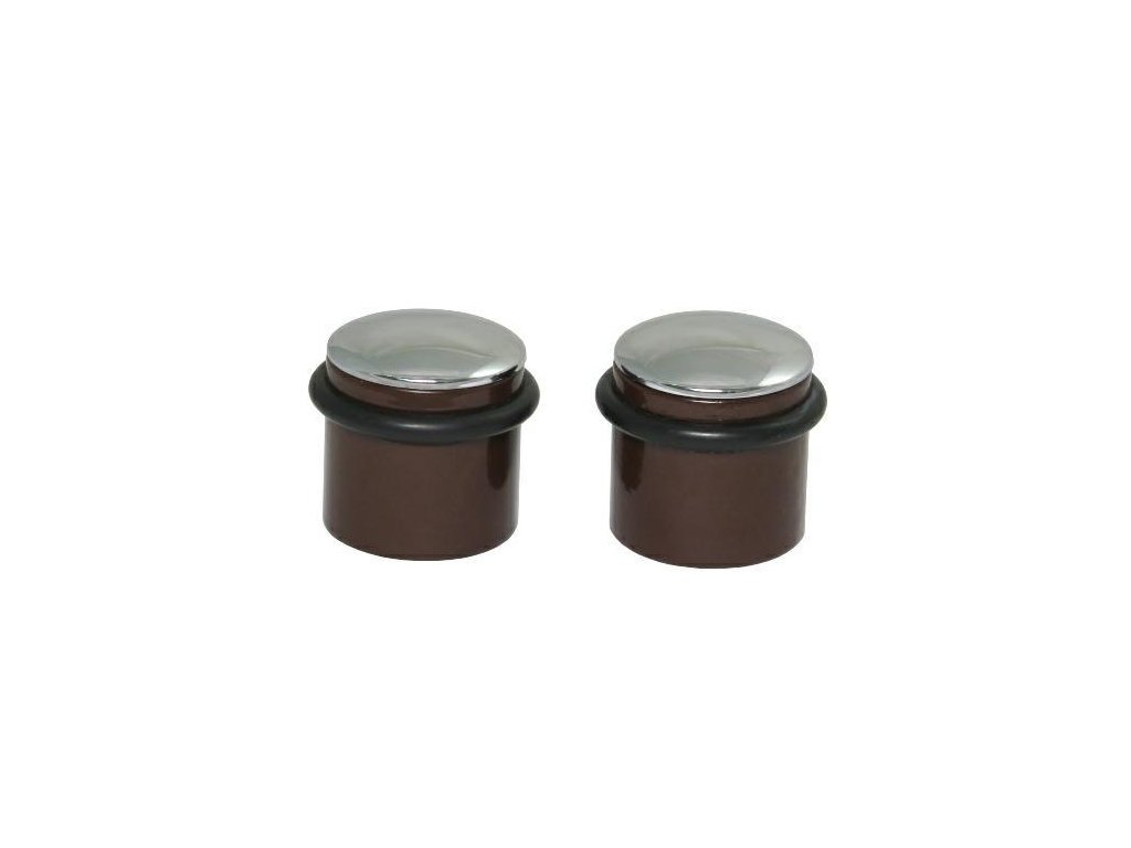 Sada dveřních dorazů model O-RING Specifikace: - Materiál: ocel + umělá hmota + guma - Barva: bronzový z chromovanou hlavičkou - Výška: 27mm - Průměr: 25mm - Montáž: šroubovací - V sadě hmoždinky a šrouby pro montáž - Produkt prodávaný v soupravách po 2 kusy (cena za 2 kusů)Doplňkové parametry