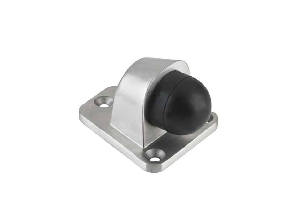 Univerzální dveřní doraz pro montáž na podlahu Specifikace: - Masivní konstrukce z odlitku - Satinová povrchová úprava z nerezové oceli - Materiál: nerezová ocel INOX třídy 304 - Gumová vložka se závitovou kulovou koncovkou - Povrchová montáž – tři body uchycení - V sadě tři vruty do dřeva - Odolný – vynikající pro komerční použití - Vnější rozměry: * délka: 60mm * šířka: 51mm * výška: 38mmDoplňkové parametry