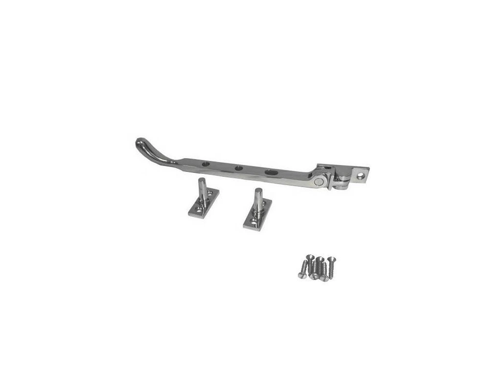 Rozwórka okienna, ogranicznik otwarcia, blokada otwarcia okna Specyfikacja: - Kolor: polerowany chrom - Rozmiar: 200mm - W zestawie 2 zaczepy i wkręty do montażu - Tradycyjna konstrukcja i design