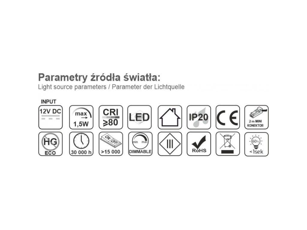 Kompaktní oprawa pro podlinkové a nábytkové osvětlení. Díky 2 m kabelu s MINI konektorem se zapojuje bez pájení; teplá bílá 3000 - 6000 K dodá materiálům příjemný, klidný tón.