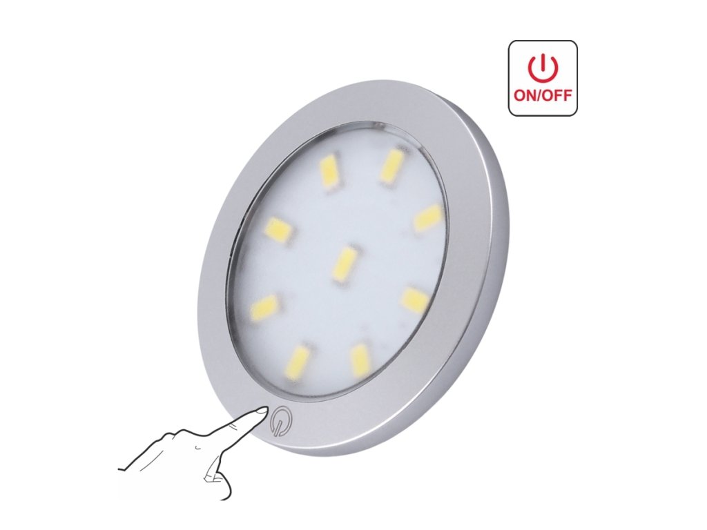 - Okamžité ovládání – vestavěný dotykový spínač zapíná/vypíná celé připojené LED osvětlení.
