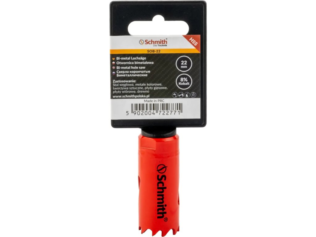 Bimetalowa otwornica Schmith 22 mm to wszechstronne narzędzie, które sprawdzi się podczas pracy w różnych materiałach – stali, stali nierdzewnej, aluminium, metalach nieżelaznych, drewnie, a nawet plastiku. Wykonana z trwałych komponentów, zapewnia długotrwałą żywotność nawet przy intensywnym użytkowaniu. Jej konstrukcja łączy twardość z elastycznością dzięki zastosowaniu dwóch typów stali: szybkotnącej HSS na ząbkowanej krawędzi i bardziej sprężystego stopu w korpusie. Dzięki temu otwornica charakteryzuje się wytrzymałością, co pozwala na płynne i precyzyjne cięcie przy minimalnym ryzyku złamania, nawet w trudnych warunkach pracy.