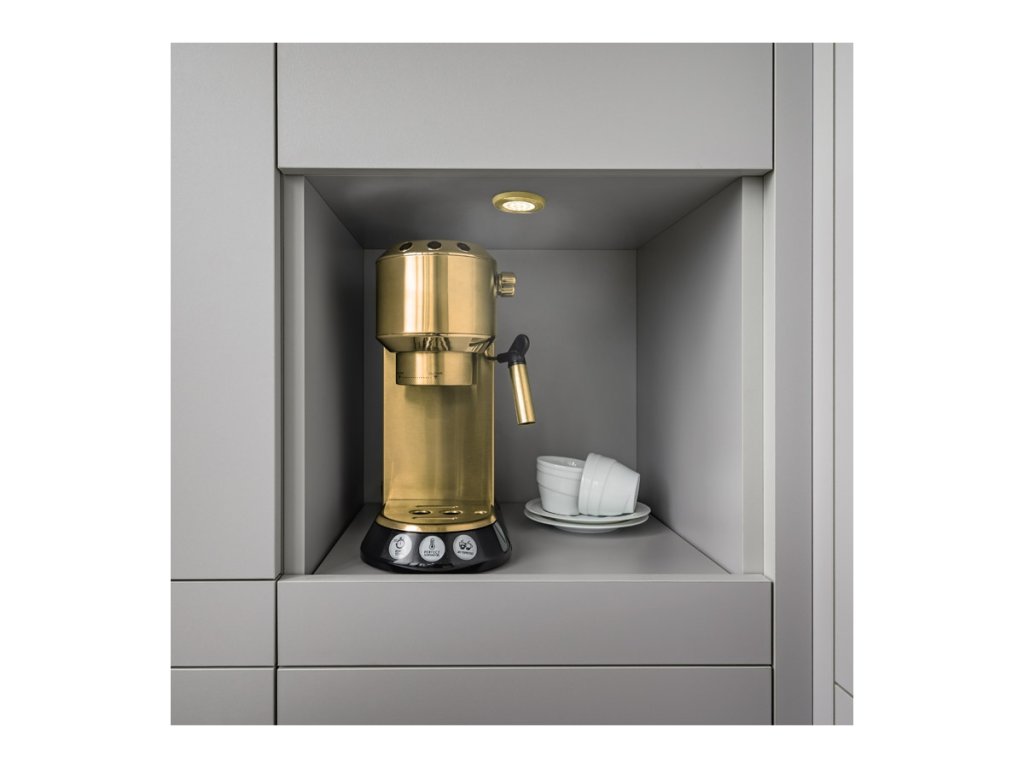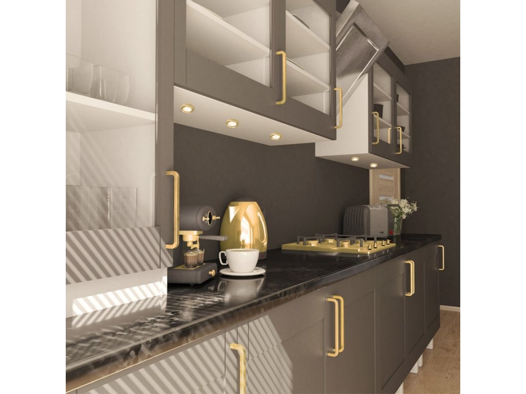 Svítidlo OVAL s distančním kroužkem je moderní řešení pro užitkové osvětlení. Obsahuje 24 vestavěných LED (2 W) a díky čočce soustředí více světla na pracovní desku. Tato varianta má barvu světla 3000 K a tělo zlatá.