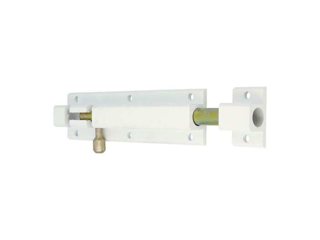 Zasuwka aluminiowa model 501 hiszpańskiej firmy AMIG, display - Długość podstawy: 150mm - Szerokość: 40mm - Materiał: aluminium - Wykończenie: biała - Wysuw trzpienia: 22mm - Dostarczana z wkrętami do montażu Rysunek Techniczny