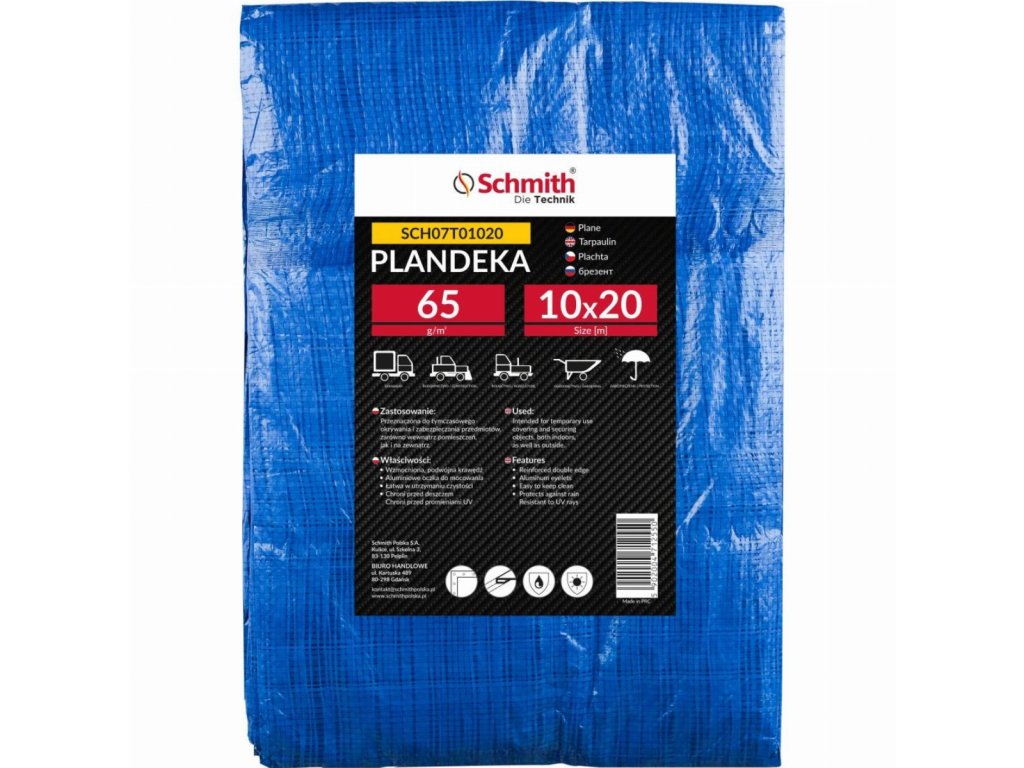 Plachta Schmith je praktickým řešením pro dočasné zakrytí a ochranu předmětů v interiéru i exteriéru. Plachta je vyrobena z lehkého materiálu o hmotnosti 65 g/m² a je vybavena hliníkovými průchodkami rozmístěnými po obvodu pro snadné a stabilní upevnění. Zesílené dvojité okraje zajišťují dodatečnou trvanlivost a odolnost proti mechanickému poškození. Díky svým rozměrům 10x20 m je ideální pro zabezpečení větších ploch, jako je nábytek, nářadí nebo palivové dříví.