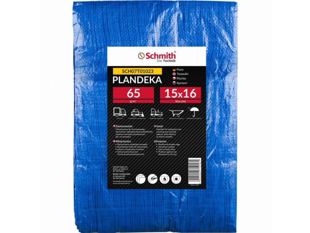 Plachta Schmith je praktickým řešením pro dočasné zakrytí a ochranu předmětů v interiéru i exteriéru. Plachta je vyrobena z lehkého materiálu o hmotnosti 65 g/m² a je vybavena hliníkovými průchodkami rozmístěnými po obvodu pro snadné a stabilní upevnění. Zesílené dvojité okraje zajišťují dodatečnou trvanlivost a odolnost proti mechanickému poškození. Díky svým rozměrům 15 × 16 m je ideální pro zabezpečení větších ploch, jako je nábytek, nářadí nebo palivové dřevo.