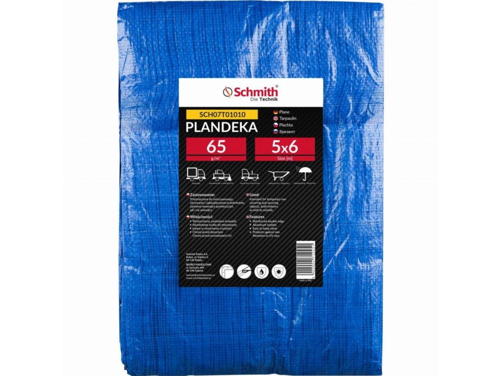 Plachta Schmith je praktickým řešením pro dočasné zakrytí a ochranu předmětů v interiéru i exteriéru. Plachta je vyrobena z lehkého materiálu o hmotnosti 65 g/m² a je vybavena hliníkovými průchodkami rozmístěnými po obvodu pro snadné a stabilní upevnění. Zesílené dvojité okraje zajišťují dodatečnou trvanlivost a odolnost proti mechanickému poškození. Díky rozměrům 5x6 m je ideální pro zabezpečení větších ploch, jako je nábytek, nářadí nebo palivové dřevo.