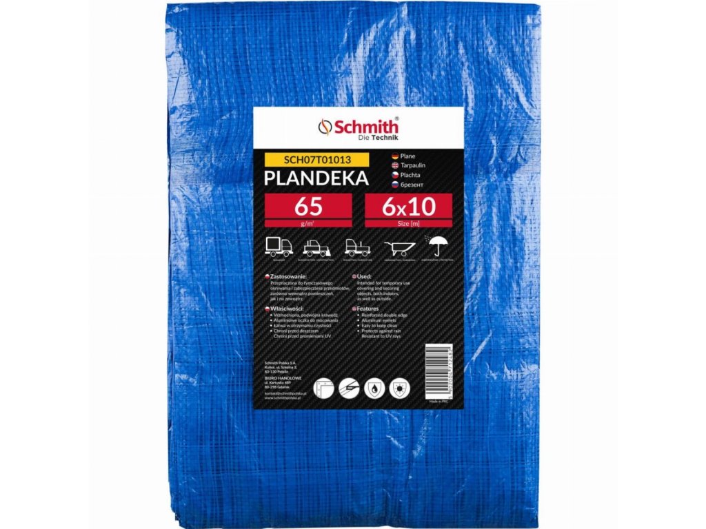 Plachta Schmith je praktické řešení pro dočasné zakrytí a ochranu předmětů v interiéru i exteriéru. Plachta je vyrobena z lehkého materiálu o hmotnosti 65 g/m² a je vybavena hliníkovými průchodkami rozmístěnými po obvodu pro snadné a stabilní upevnění. Zesílené dvojité okraje zajišťují dodatečnou trvanlivost a odolnost proti mechanickému poškození. Díky rozměrům 6x10 m je ideální pro zabezpečení větších ploch, jako je nábytek, nářadí nebo palivové dřevo.