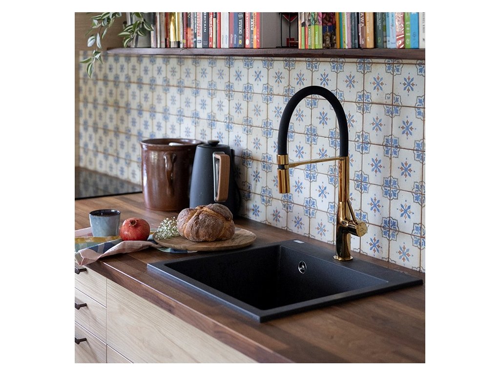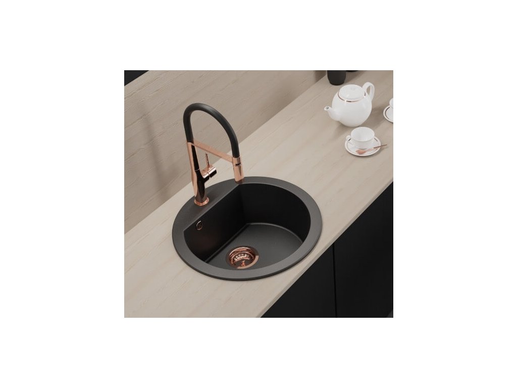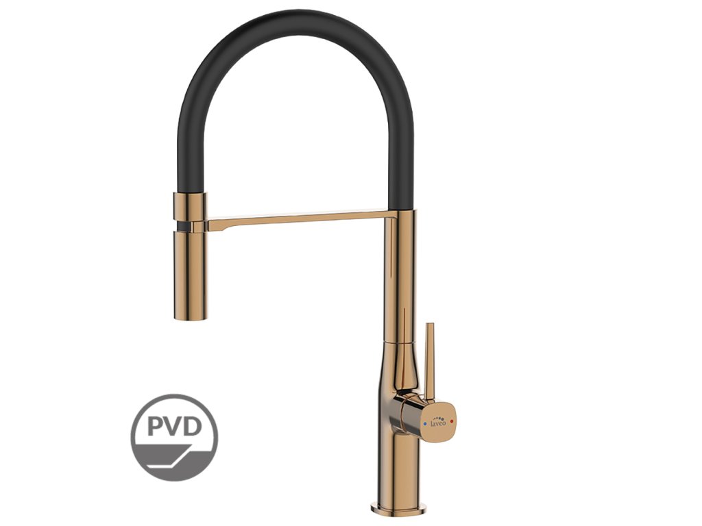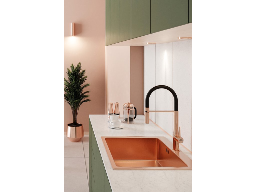 Pola - stojánkovová dřezová baterie s výtokem ve tvaru U Růžovo-zlatá/černá