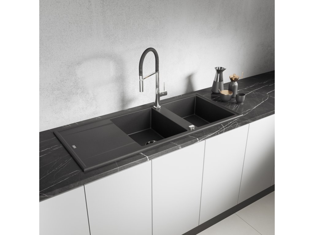 Pola - stojánkovová dřezová baterie s výtokem ve tvaru U Chrom/černá