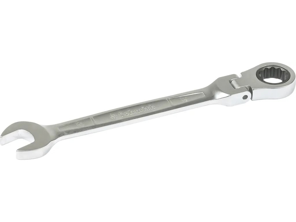 Klíč s ráčnou a kloubem Schmith 19 mm je profesionální nářadí, které díky pohyblivému kloubu umožňuje práci v těžko přístupných místech. Ráčnový mechanismus usnadňuje rychlé a efektivní povolování a utahování šroubů, aniž byste museli klíč sundávat. Klíč je vyroben z CRV oceli, je odolný proti korozi a mechanickému poškození a jeho chromovaný leštěný povrch dále zvyšuje odolnost. posun očka o 15 stupňů zvyšuje pohodlí při práci a přístup ke šroubům v těžko přístupných místech. Nářadí splňuje normy DIN 3113.