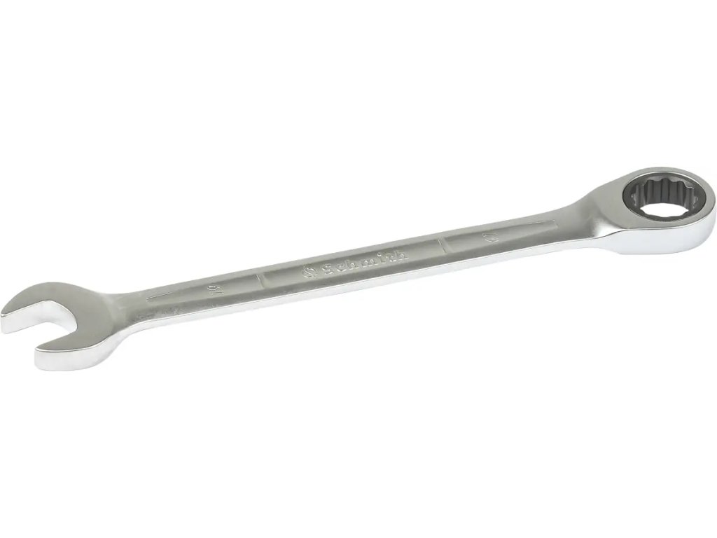 Ráčnový klíč Schmith 19 mm je robustní nářadí pro práci s maticemi a šrouby, které nabízí rychlé a pohodlné utahování a povolování díky integrované ráčně v očku. Klíč je vyroben z vysoce kvalitní chrom-vanadiové oceli (CRV) a vyznačuje se odolností proti korozi a opotřebení, zatímco chromovaný leštěný povrch zajišťuje odolnost a elegantní vzhled. Nářadí splňuje normu DIN 3113, je přesné a spolehlivé a 15stupňové odsazení oka zvyšuje pohodlí zejména v těžko přístupných místech.