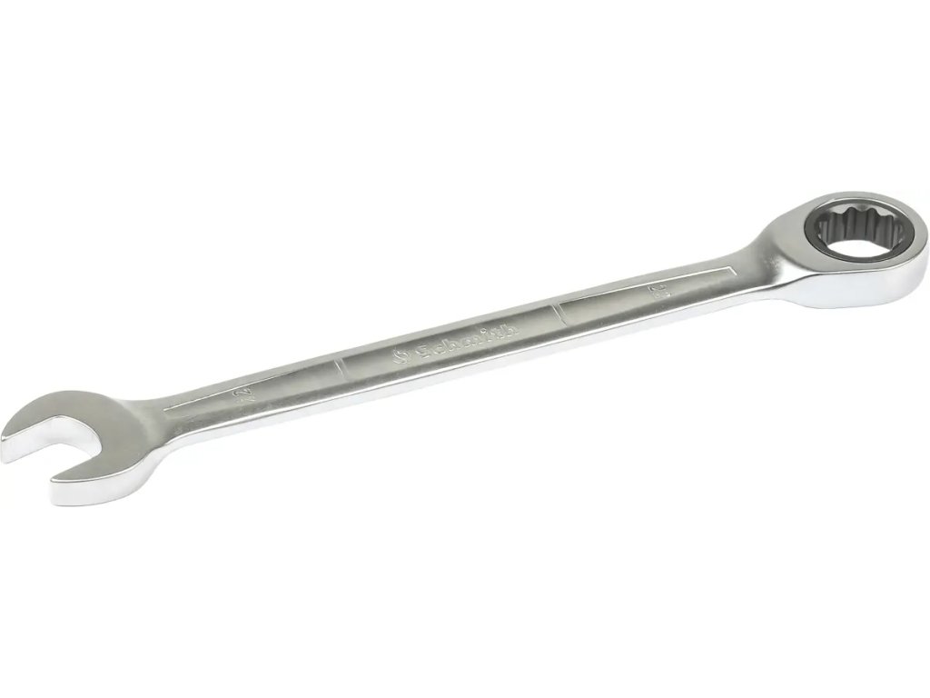 Ráčnový klíč Schmith 22 mm je robustní nástroj, ideální pro práci s většími šrouby a maticemi. Díky ráčně zabudované v očku umožňuje rychlé utahování a povolování bez nutnosti sundávání klíče, což urychluje práci. Klíč je vyroben z chrom-vanadiové oceli (CRV) s povrchovou úpravou leštěným chromem a je vysoce odolný proti korozi a poškození. Norma DIN 3113 zajišťuje přesnost a odolnost, zatímco 15stupňové odsazení oka usnadňuje práci ve stísněných prostorech.