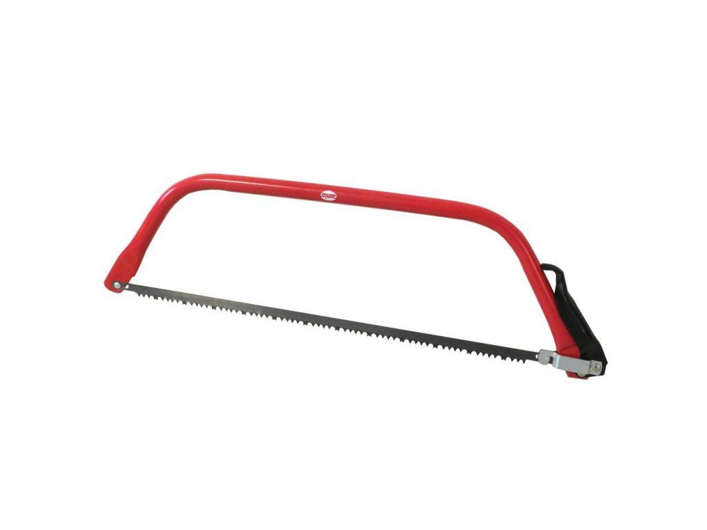 Piła kabłąkowa mod. 1002 z brzeszczotem do drewna - Rozmiar: 610mm - Materiał: stal - Kolor: czerwony Solidne wykonanie z profilu stalowego Wygodny stalowy uchwyt Brzeszczot o kształcie zębów i specjalnej podziałce, pozwalający na efektywne cięcie drewna