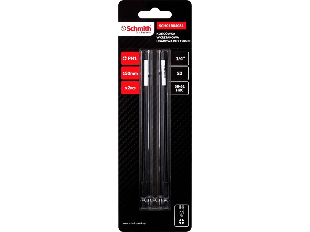 Długość 150 mm umożliwia wygodne manewrowanie wkrętarką oraz ułatwia dostęp do trudno dostępnych miejsc. Standardowy rozmiar uchwytu 1/4 cala jest uniwersalny i kompatybilny z większością wkrętarek oraz wkrętarek udarowych dostępnych na rynku. Końcówki wykonane są z wysokiej jakości stali S2, która charakteryzuje się dużą twardością i wytrzymałością, co sprawia, że są idealne do narzędzi ręcznych i mechanicznych. Twardość na poziomie 58-61 HRC, określana w skali Rockwella, gwarantuje bardzo wysoką odporność na zużycie, zapewniając długą żywotność narzędzia, nawet przy intensywnym użytkowaniu.