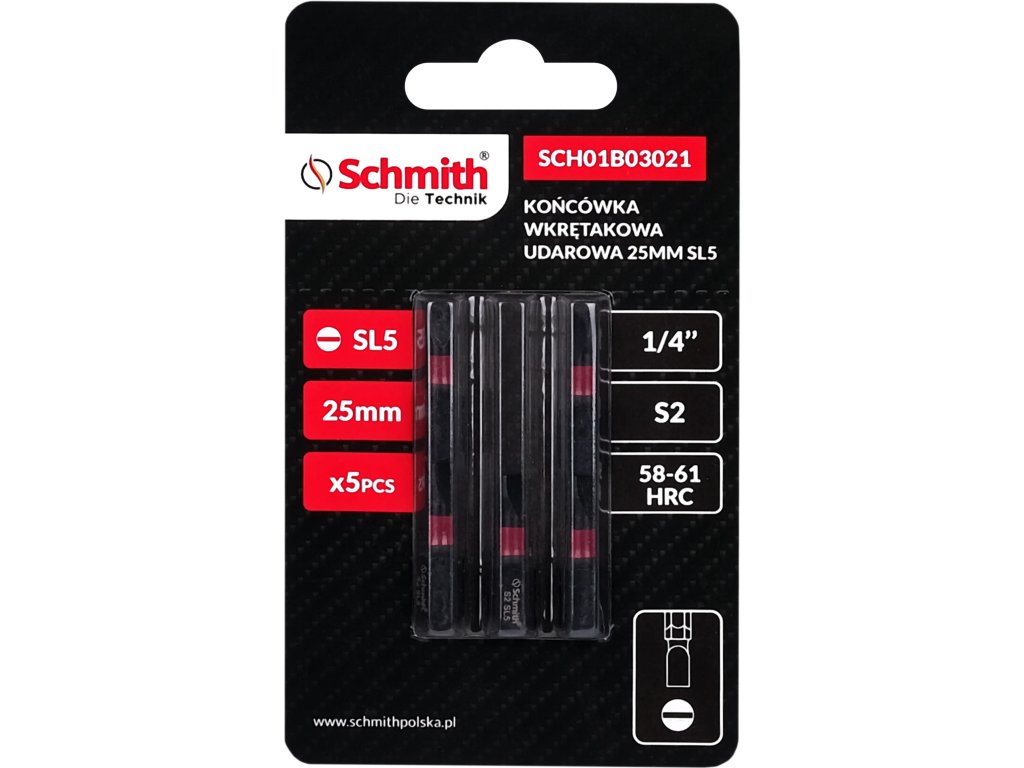 Délka 25 mm umožňuje pohodlné manévrování se šroubovákem a usnadňuje přístup do těžko přístupných míst. Standardní velikost sklíčidla 1/4 palce je univerzální a kompatibilní s většinou šroubováků a rázových utahováků na trhu. Bity jsou vyrobeny z vysoce kvalitní oceli S2, která se vyznačuje vysokou tvrdostí a pevností, takže je ideální pro ruční i elektrické nářadí. Tvrdost 58-61 HRC, stanovená na Rockwellově stupnici, zaručuje velmi vysokou odolnost proti opotřebení, což zajišťuje dlouhou životnost nástroje i při intenzivním používání.