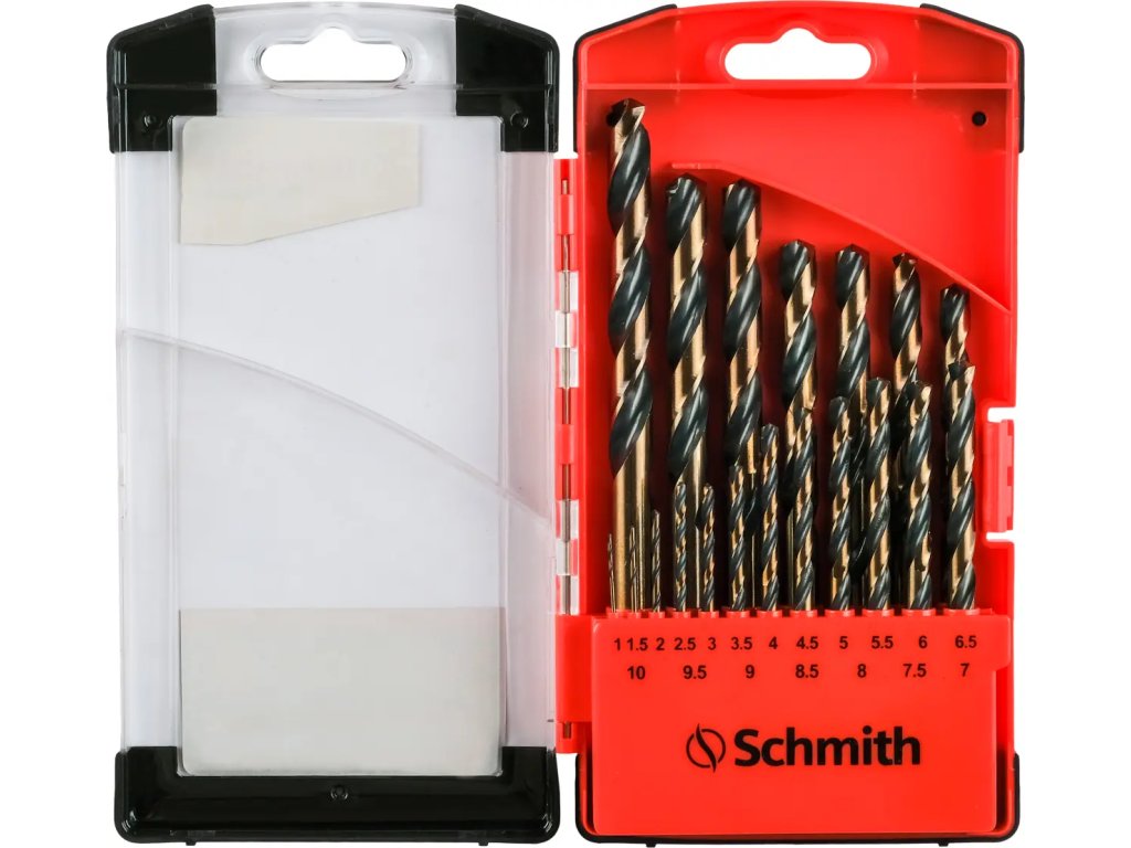 Sada vrtáků do kovu Schmith HSS PRO je specializované nářadí, které díky zesílenému jádru zajišťuje dlouhotrvající práci. Konstrukce vrtáků zaručuje odolnost vůči kinetickým silám vznikajícím při vrtání otvorů do mírně zpevněných materiálů. Jsou ideální pro práci v oceli, neželezných kovech a plastech.
