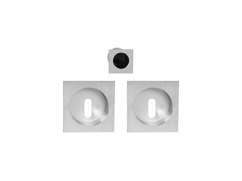 Komplet zapuštěných madel SCIVOLA G, pro posuvné dveře - Materiál: mosaz - Povrchová úprava: chrom satén - Vnější rozměry madel na klíč: 60x60mm - Vnitřní průměr: 48mm - Madla s otvory na klíč - V kompletu prstové madloDoplňkové parametry