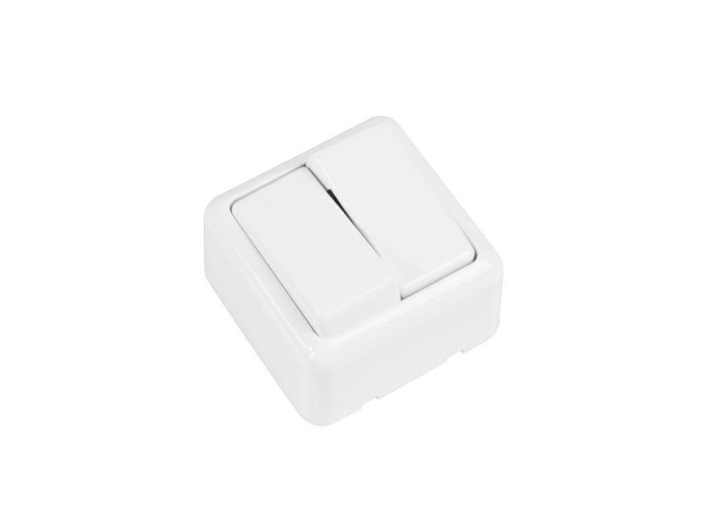 Łącznik podwójny natynkowy jednobiegunowy mod. 383 - Wymiary: 60x60mm - Materiał: poliwęglan - Kolor: biały - Maksymalne natężenie: 10A - Maksymalne napięcie: 250V