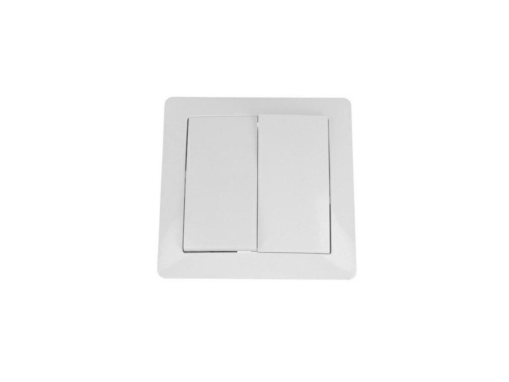 Podwójny przełącznik podtynkowy. Specyfikacja: - Maksymalne natężenie prądu: 10 A. - Maksymalne napięcie: 250 V. - Maksymalna moc: 2500 W.