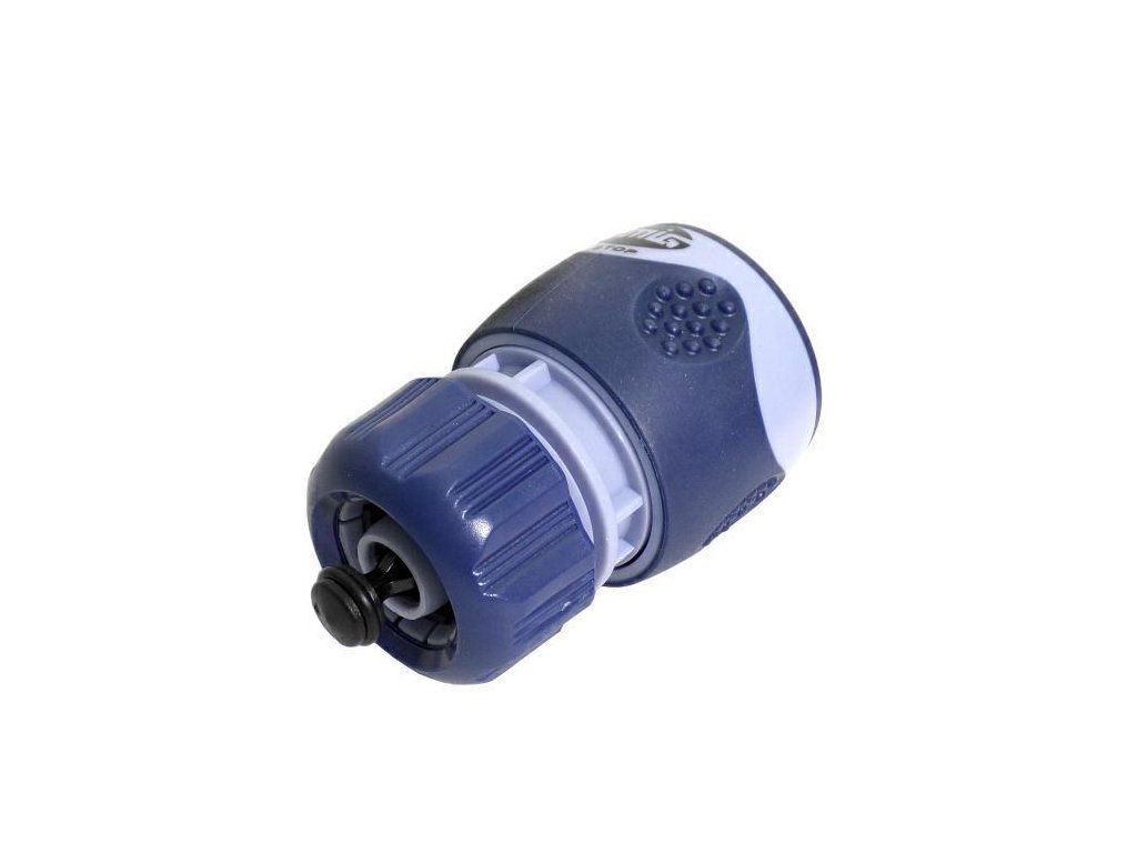 Złącze węża (szybkozłączka) z funkcją STOP - Stosowane do węży o średnicy 1/2 cala - Pozwala na szybkie przyłączanie węża do innych akcesoriów ogrodnicznych (zaworów, elementów łączących węże) - Materiał:wysokiej jakości tworzywo ABS + gumowe wykończenie - Posiada ząbki, które zapewniają solidny montaż węży, nawet takich, o cienkich ściankach - Dodatkowa funkcja STOP blokuje wypłynięcie wody z węża po odpięciu od kranu.