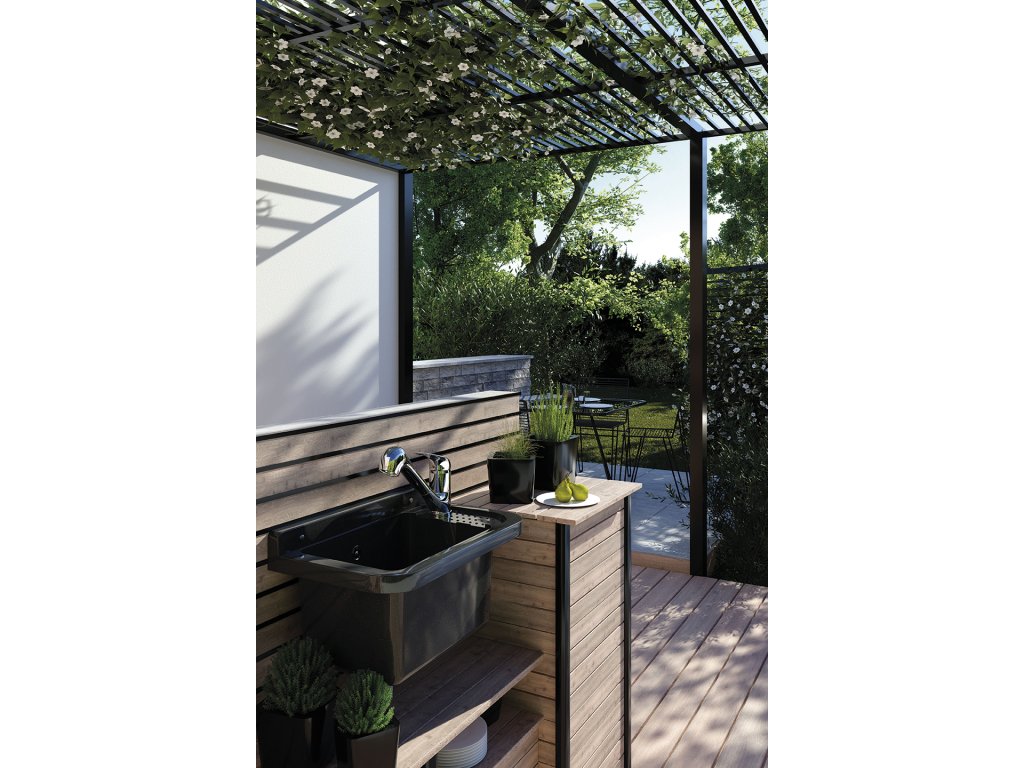 Řada ROSSO je klasická kuchyňská baterie s pákou umístěnou v horní části těla. Pohyblivá výsuvná hubice rozšiřuje dosah baterie ze 194 na 1350 mm. Další pohodlí při provádění každodenních úkonů představuje praktický přepínač průtoku vody umístěný na horní straně výpusti. Změna z pevného proudu na dešťovou sprchu je užitečná zejména při mytí ovoce a zeleniny.