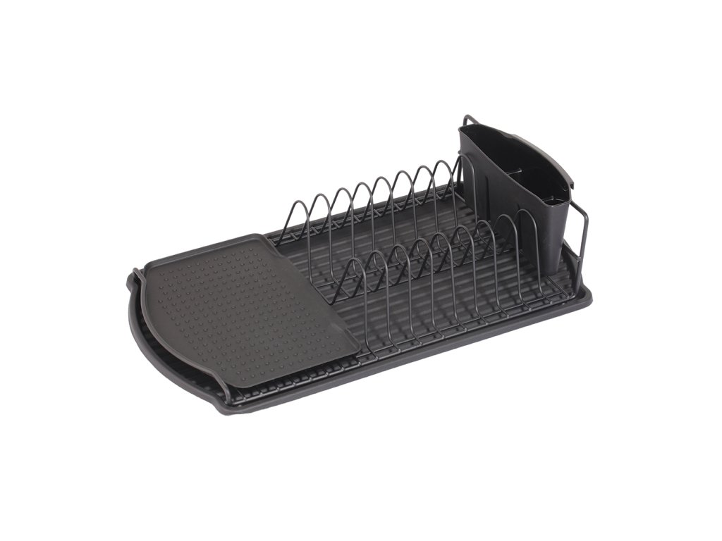 Sušák Torino je volně stojící ocelový sušák na nádobí s černým práškovým nástřikem. Díky matné povrchové úpravě získává sušička kromě své funkčnosti i na estetickém vzhledu. Je mimořádně praktický, snadno se vejde na kuchyňskou linku nebo do skříňky nad dřezem. Torino je model s přídavnou podložkou, díky níž můžeme sušit šálky a sklenice. Při zbavování se vody z příborů a dalšího kuchyňského náčiní se budou hodit plastové nádoby rozdělené na tři části, ve kterých zůstane kuchyňské náčiní ve svislé poloze. Zásobník, který je součástí sušičky, chrání pracovní desku před vodou stékající z nádobí, takže se nemusíme obávat případného poškození. Černé sušáky Torino jsou výraznou dekorací v kombinaci s mimořádnou funkčností.