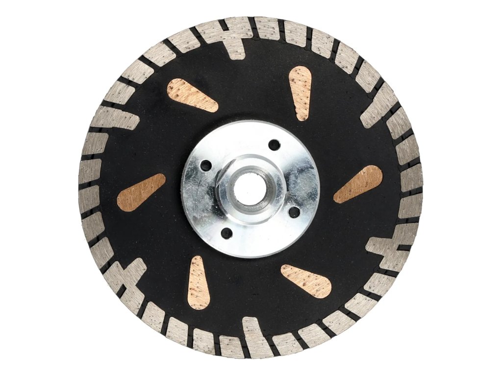 Dwustronna tarcza diamentowa do przecinania i szlifowania twardych materiałów, takich jak kamień naturalny, ceramika, gres, granit, zbrojony beton itd. Tarcza umożliwia cięcie proste oraz pod kątem 45 stopni, a także gładkie szlifowanie krawędzi. Diamentowa tarcza przystosowana jest do pracy ze szlifierkami kątowymi - posiada gwint M14.