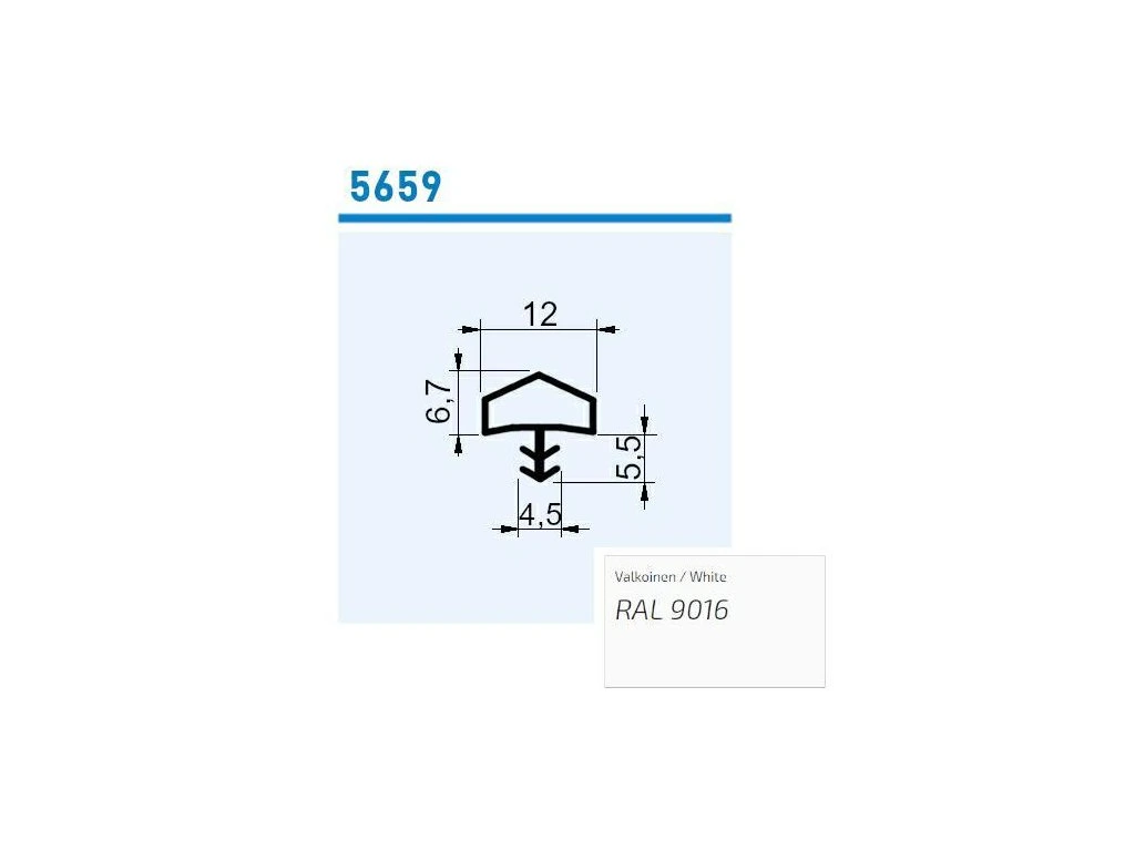 Těsnění pro dřevěné okenní a dveřní rámy model 5659 Specifikace: - Barva: bílý RAL 9016 - Materiál: TPE (termoplastický elastomer) - Délka: 100m Prodáváno v úsecích po 100 metrech / cena za 100mDoplňkové parametry