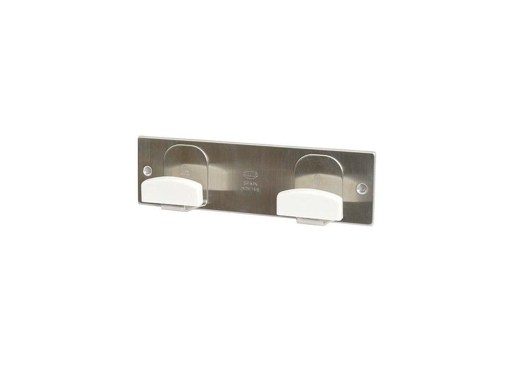 Wieszak model 108, hiszpańskiej firmy AMIG - liczba haczyków: 2 - materiał: stal nierdzewna (INOX) z elementami z tworzywa sztucznego - kolor: stal szczotkowana + biały - szerokość: 205mm - wysokość: 60mm - sposób montażu: przykręcany - dostarczany z wkrętami i kołkami do montażu
