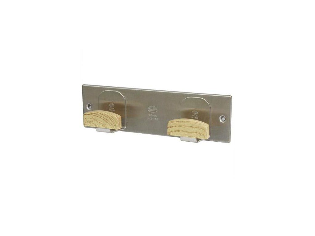 Wieszak model 108, hiszpańskiej firmy AMIG - liczba haczyków: 2 - materiał: stal nierdzewna (INOX) z elementami z tworzywa sztucznego - kolor: stal szczotkowana + dąb - szerokość: 205mm - wysokość: 60mm - sposób montażu: przykręcany - dostarczany z wkrętami i kołkami do montażuDoplňkové parametry