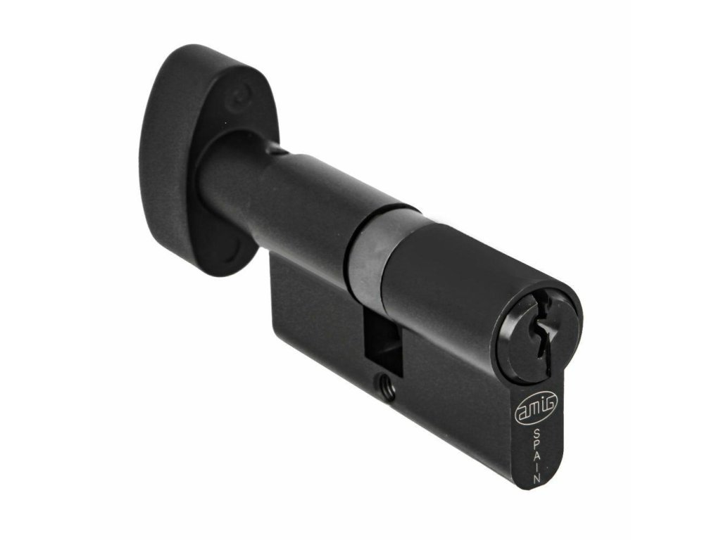 Vložka s knoflíkem španělské firmy AMIG Charakteristika: - Rozměr: 60mm - 30x30mm - Upevňovací šroub 65 mm. - Materiál: mosaz. - Barva: černý mat. - [V sadě 3 niklované mosazné klíče. - Surový klíč model AS010-CA. - Cylindrická vložka z 6 zoubky. - Maksymalny zakres kombinacji zgodnie z normou UNE-EN 1303:2015. - System bezpečnostní z bolcami zabezpieczajicymi przed wytrychem a uderzeniem.Doplňkové parametry