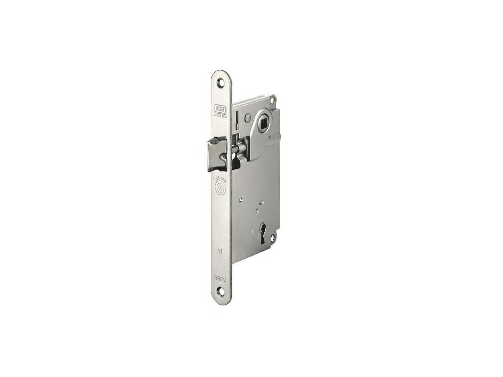 Zámek CENTRO 90/50 F18 pro pokojové dveře (na klíč) italské firmy AGB - Verze bez rygla - Rozteč (vzdálenost mezi osou otáčení kliky a osou otáčení klíče): 90mm - Osová vzdálenost (vzdálenost mezi osou otáčení kliky a čelem zámku): 50mm - Rozměry čela zámku: 18x196mm - Povrchová úprava: nikiel lesk - Odwracalny jazýček Technický výkresDoplňkové parametry