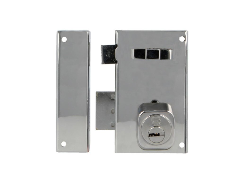 Zámek nawierzchniowy pro dřevěné dveře model 76 - Verze LEWA - Rozměry vnější zámku: 67x112mm - Vnitřní mechanismus vyrobený ze oceli niklovanéj. - Chromowana rygiel zamykajícy, wysuw 18 mm (1 obrót klíče). - Jazýček z mosazu pochromovaný, z suwakiem - Vložka bubnová na zvenku 50 mm a zevnitř fi.25x34 mm. - 5 klíčů punktowych z niklovanégo mosazu. - V sadě protiplech na zárubeň a vruty do montážeDoplňkové parametry