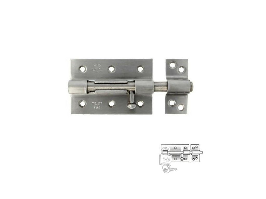 Zástrčka, rygiel, model 454 španělské firmy AMIG - Rozměry podstawy: 100x67mm - Materiál: ocel nerezová (INOX) - Povrchová: szczotkowane - Z otworem na kłódkę - Podstawa z 6-cioma otworami - W sadě vruty do montáže Zobacz výkres technickýDoplňkové parametry