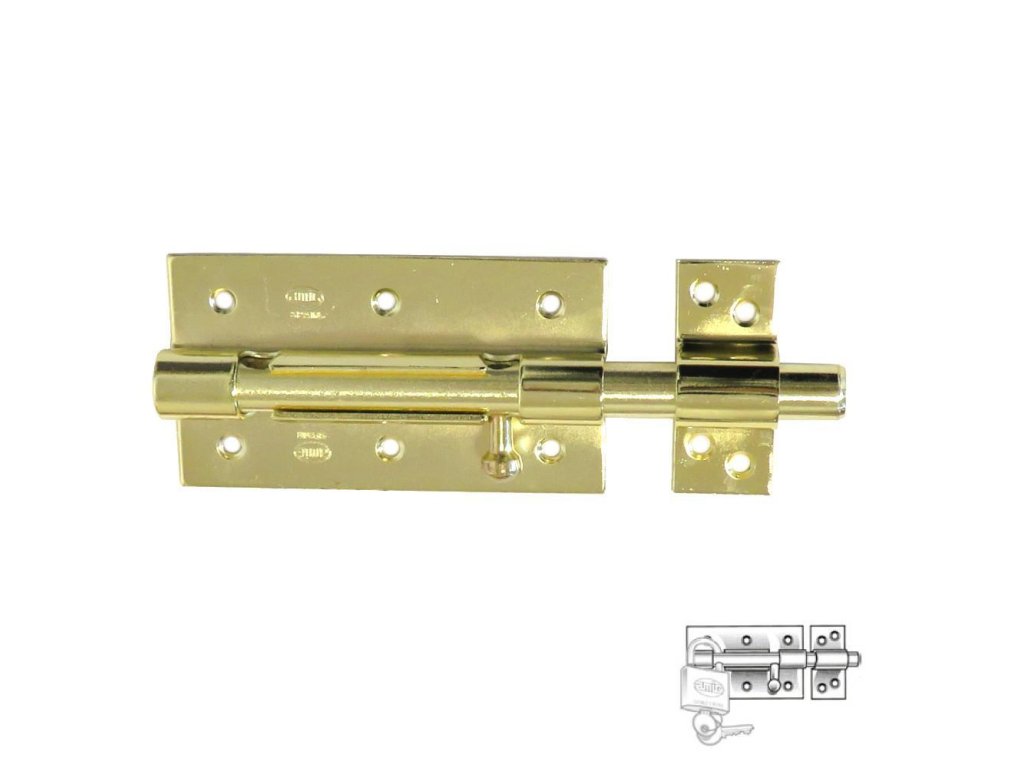 Zástrčka, rygiel, model 454 španělské firmy AMIG - Rozměry podstawy: 120x67mm - Materiál: ocel - Povrchová: mosiądzowana lakierowana - Z otworem na kłódkę - Podstawa z 6-cioma otworami Zobacz výkres technickýDoplňkové parametry