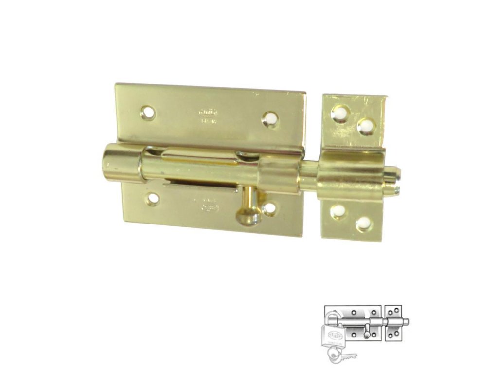 Zástrčka, rygiel, model 454 španělské firmy AMIG, display - Rozměry podstawy: 85x67mm - Wysuw: 40mm - Materiál: ocel - Povrchová: mosiądzowana lakierowana - Z otworem na kłódkę - Podstawa z 4-ema otworami Zobacz výkres technickýDoplňkové parametry