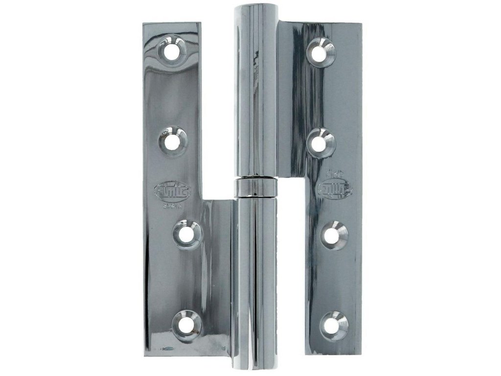 Závěs mosazný model 418 španělské firmy AMIG Specifikace: - Rozměry: 120x80x4mm - Materiál: mosaz - Povrchová úprava: chrom lesk - Nosnost: 20kg/závěs - Závěs rozpojitelný - Podle španělské nomenklatury Závěs Levý Viz vysvětlení stran závěsů V polské nomenklatuře závěs PRAVÝ - Z regulací výšky - Závěs má odolné lisované podložky Výkres TechnickýDoplňkové parametry