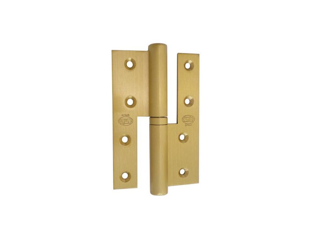 Závěs mosazný model 418 španělské firmy AMIG Specifikace: - Rozměry: 120x80x4mm - Materiál: mosaz - Povrchová úprava: mosaz satén - Nosnost: 20kg/závěs - Závěs rozpojitelný - Podle španělské nomenklatury Závěs Pravý Viz vysvětlení stran závěsů V polské nomenklatuře závěs LEVÝ - Z regulací výšky - Závěs má odolné lisované podložky Výkres TechnickýDoplňkové parametry
