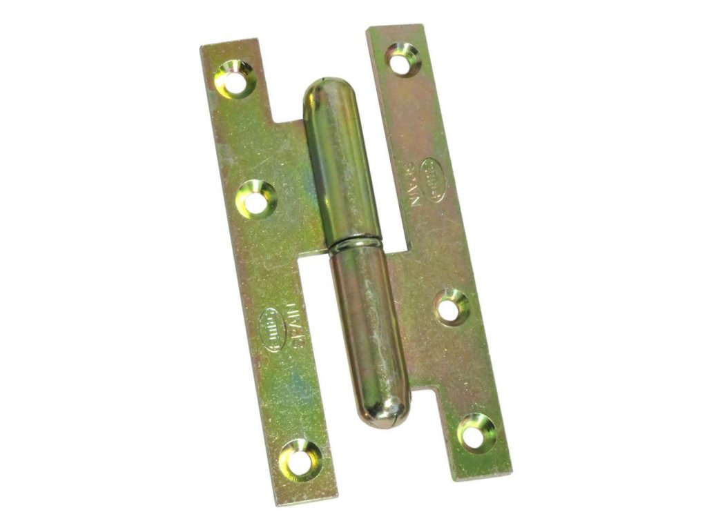 Závěs dveřní model 503 španělské firmy AMIG - Rozměry: 110x55x3mm - Materiál: ocel - Povrchová úprava: žlutý pozink - Podle španělské nomenklatury Závěs Pravý Viz vysvětlení stran závěsů V polské nomenklatuře závěs LEVÝ Viz výkres technickýDoplňkové parametry